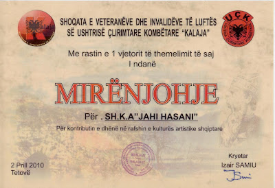 Mirënjohje nga Shoqata e veteranëve të luftës "Kalaja"