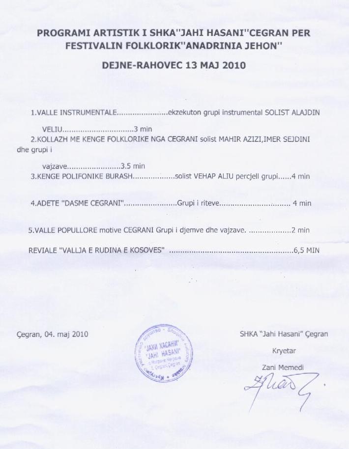 Home Njoftime Programi për në Dejnë Rahovec (Anadrinia jehon)