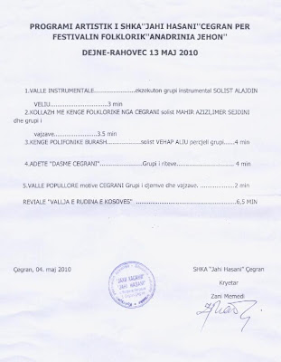 1. Festivali Anadrinia Jehon ka marre permasa kombetare me pjesemarrjen e grupeve te ndryshme te folklorit dhe madheshtin po e arrit gjithashtu pjesmarrja e banoreve te Dejnit ne percjelljen e festivalit.