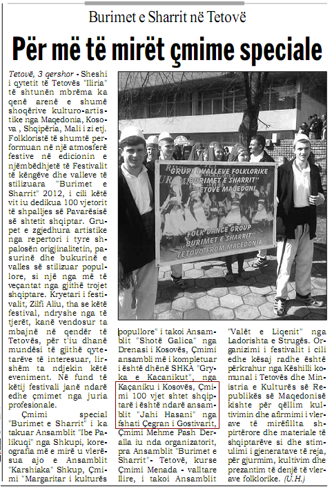 Home Festivalet Çmimi i fituar në festivalin “Burimet e Sharrit 2012”